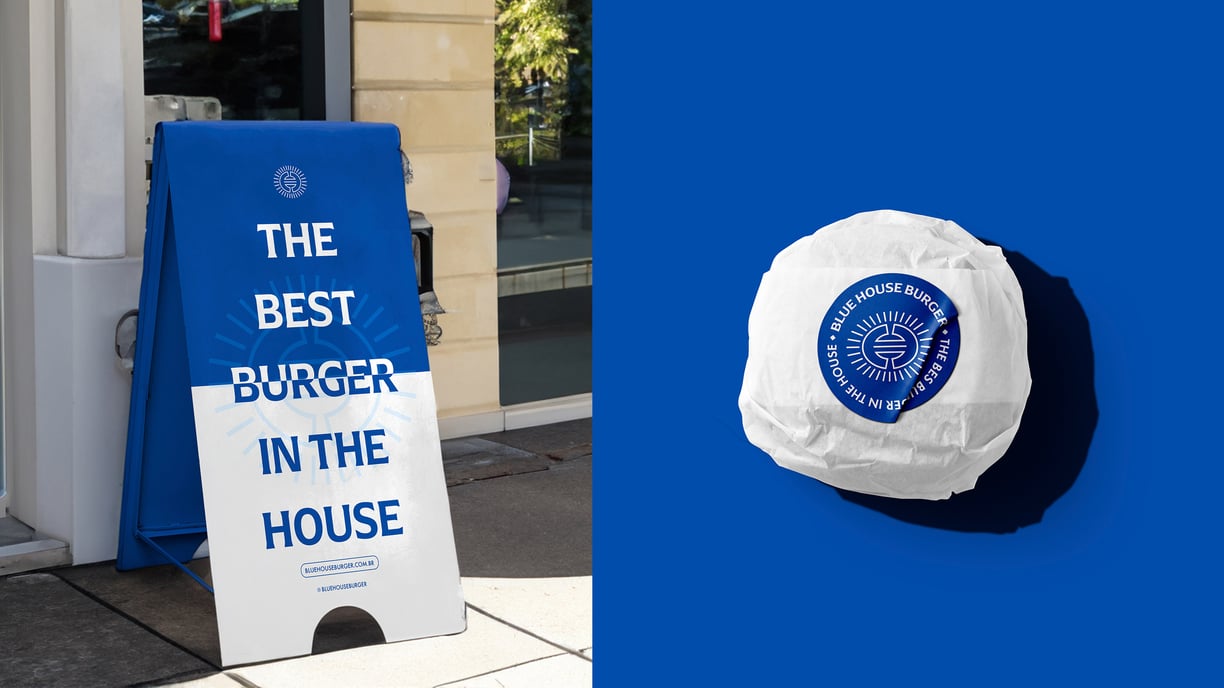 A Blue House Burger® é uma hamburgueria que inaugurou sua primeira loja/delivery em 2023 no coração de Copacabana, Rio de Janeiro. A casa é especializada em carnes selecionadas, suculência e muito sabor. A marca precisava se destacar no mercado já saturado de hamburguerias existente na cidade, para isso foi necessário uma imersão e criação de estratégia visual muito bem conceituada e estruturada. Para o projeto optamos pelo azul como cor primária e principal da marca, assim associamos diretamente as cores e visual diretamente com o nome da marca, ajudando na pregnância e reconhecimento. E ao invés de seguirmos por um caminho comum, onde diversas marcas se utilizam de fotos escuras com destaque para cores quentes e visual rústico, seguimos pelo caminho mais clássico, comum em hamburguerias das décadas de 50 e 60 nos EUA, ontem possuiam um design clean, minimalista e com bastante uso de cores frias e elementos simples.